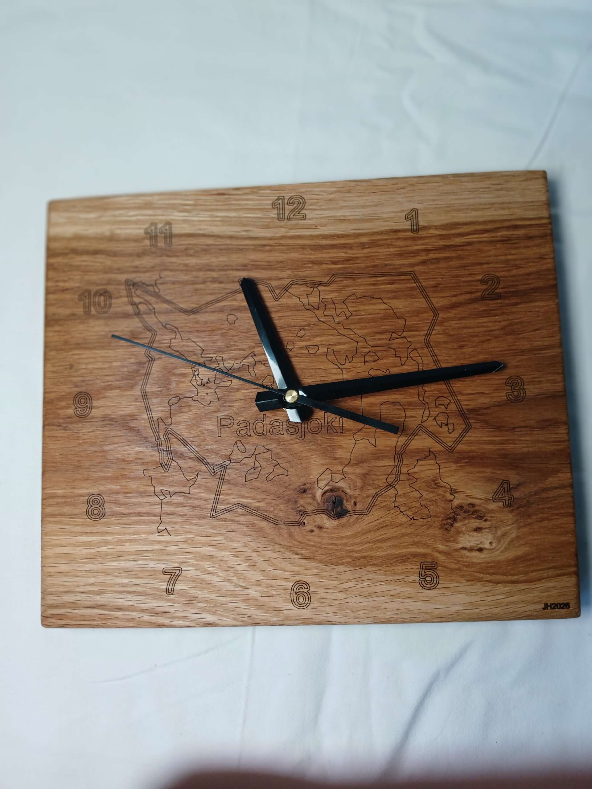 Padasjoki kello. Tausta umpitammea. Kartassa kunnan rajat, ja maamerkkejä.